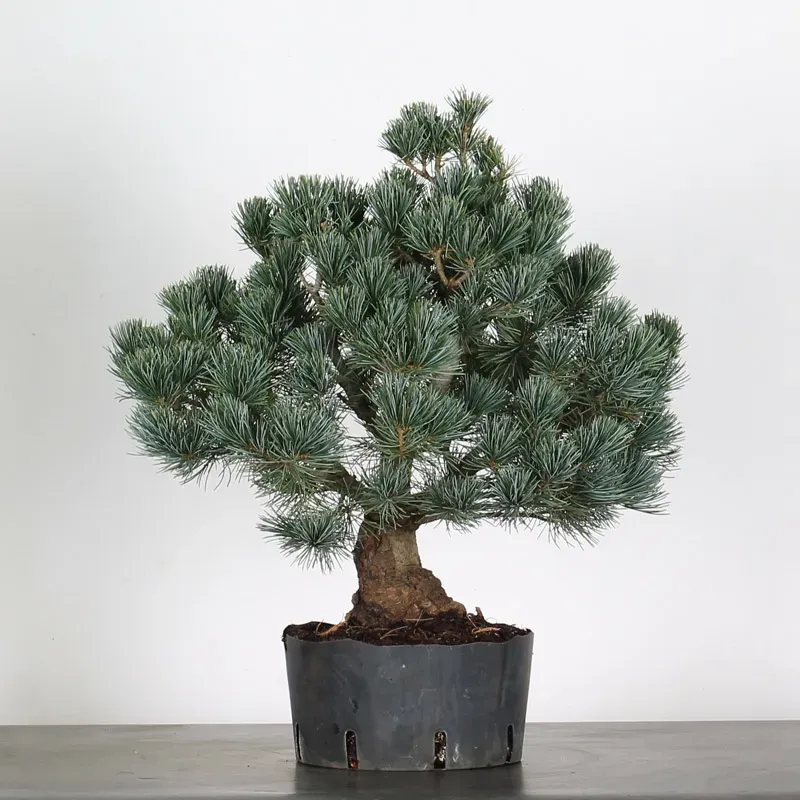 The Japanese white pine bonsai "pinus pentaphylla" is a popular tree because of its fine needles sheathed by five, green/blue colours, it can be shaped to present graceful movements of branches and an elegant trunk, it has rather a slow growth.
