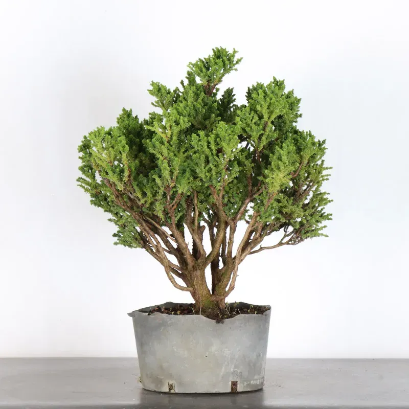 The Cryptomeria japonica bonsai, also known as Japanese cedar, is a tree prized for its dense, finely textured foliage. Its bright green needles, sometimes tinged with bronze in winter (especially in cold weather), give it a delicate appearance that changes with the seasons.