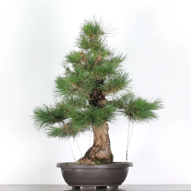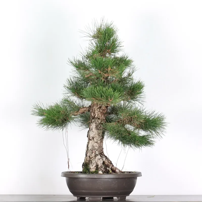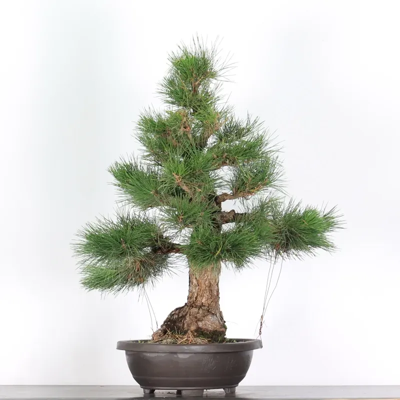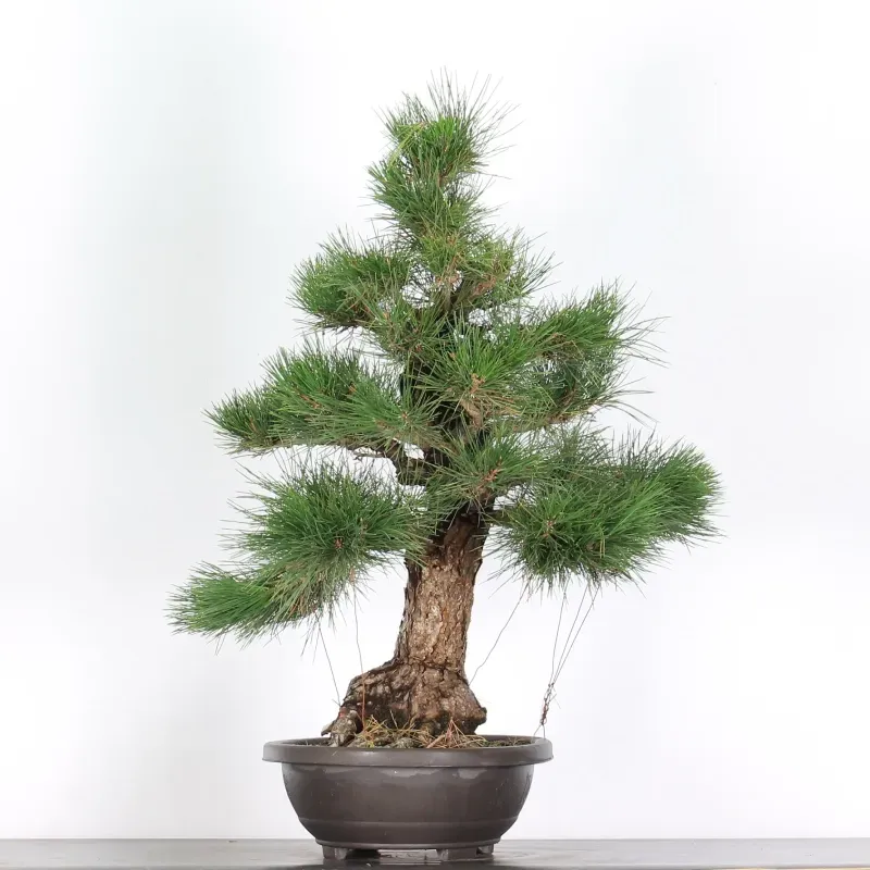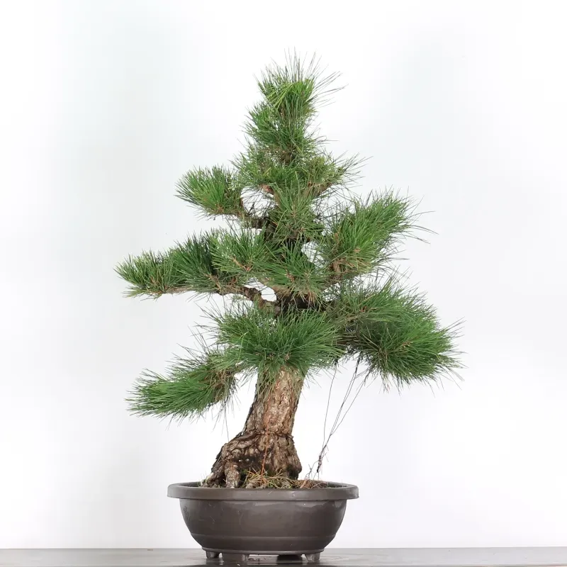 The Thunbergii Pine is a virile species par excellence: a straight, magnificent, powerful tree, firmly seated in its pot, rising toward the sky. The dark trunk, with its cracked bark, offers a striking contrast with the fairly light green needles, full of freshness and health.