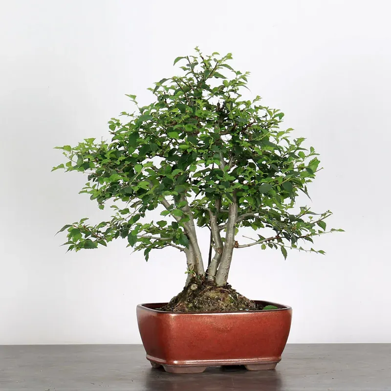 The Siberian elm "Ulmus pumila" is a bonsai prized for its hardiness and vigorous growth. It is distinguished by its small, serrated leaves, well-proportioned for bonsai, and by its trunk, which develops pronounced markings with age. Highly resistant to cold and repeated pruning, it is suitable for both beginners and experienced bonsai enthusiasts.