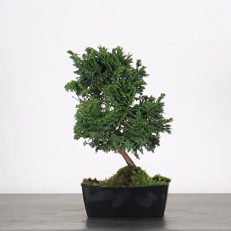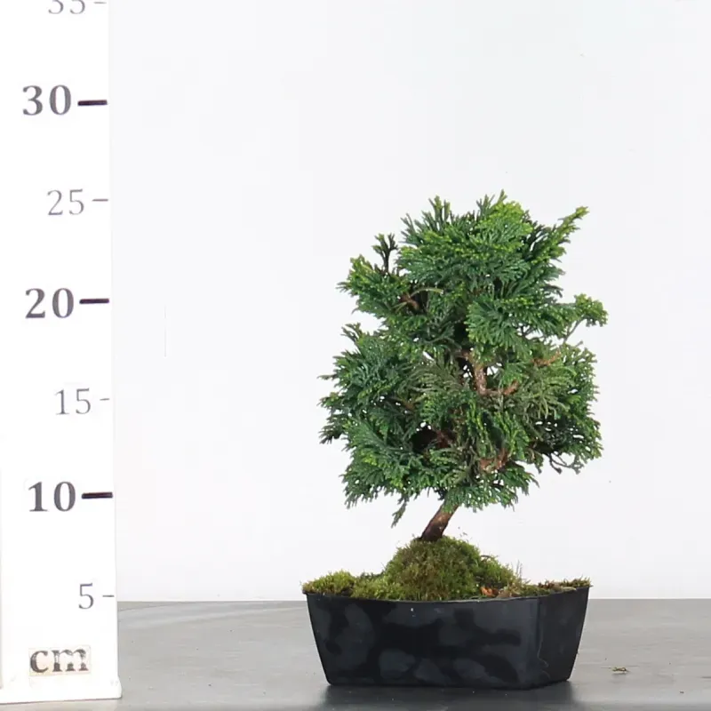 The Japanese cypress bonsai "Chamaecyparis obtusa Nana Gracilis" is a hardy conifer with dense, scaly foliage, highly prized for its distinctive shape and Japanese-inspired elegance. Its flexible wood lends itself well to wiring, making it an excellent bonsai tree. Evergreen, it retains its green foliage year-round and is resistant to cold.