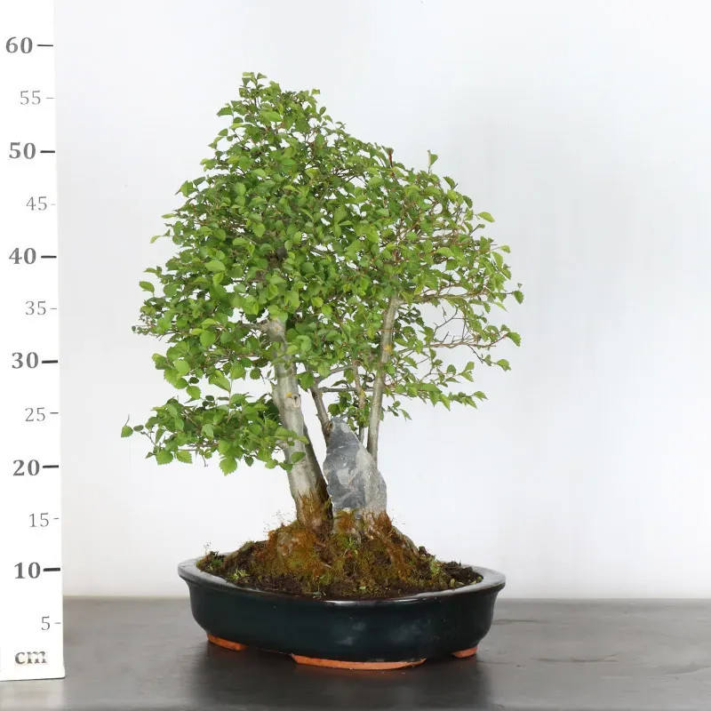 The Siberian elm "Ulmus pumila" is a bonsai prized for its hardiness and vigorous growth. It is distinguished by its small, serrated leaves, well-proportioned for bonsai, and by its trunk, which develops pronounced markings with age. Highly resistant to cold and repeated pruning, it is suitable for both beginners and experienced bonsai enthusiasts.