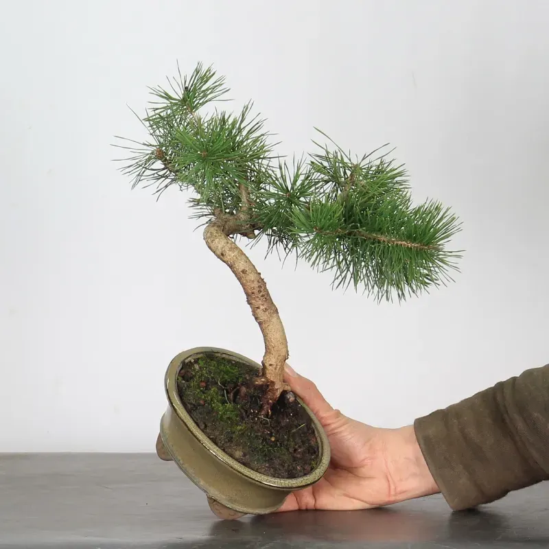 The Scots Pine bonsai "Pinus sylvestris" is a majestic and robust conifer, renowned for its longevity and remarkable adaptability, although it prefers mountain climates. Ideal for those wishing to shape their own bonsai, it offers an excellent working base thanks to its still-flexible wood, slender trunk, and laminated bark that turns ochre-red to russet over time, allowing for easy wiring and shaping. Versatile and durable, it is suitable for various styles and effectively supports the tree's development over time.