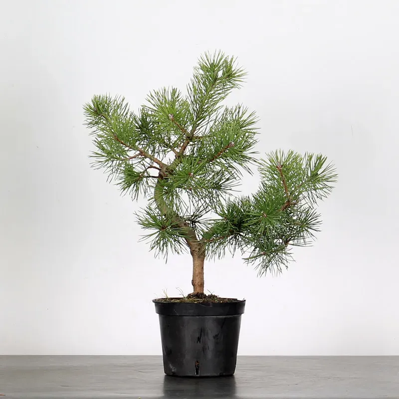 The Scots Pine bonsai "Pinus sylvestris" is a majestic and robust conifer, renowned for its longevity and remarkable adaptability, although it prefers mountain climates. Ideal for those wishing to shape their own bonsai, it offers an excellent working base thanks to its still-flexible wood, slender trunk, and laminated bark that turns ochre-red to russet over time, allowing for easy wiring and shaping. Versatile and durable, it is suitable for various styles and effectively supports the tree's development over time.