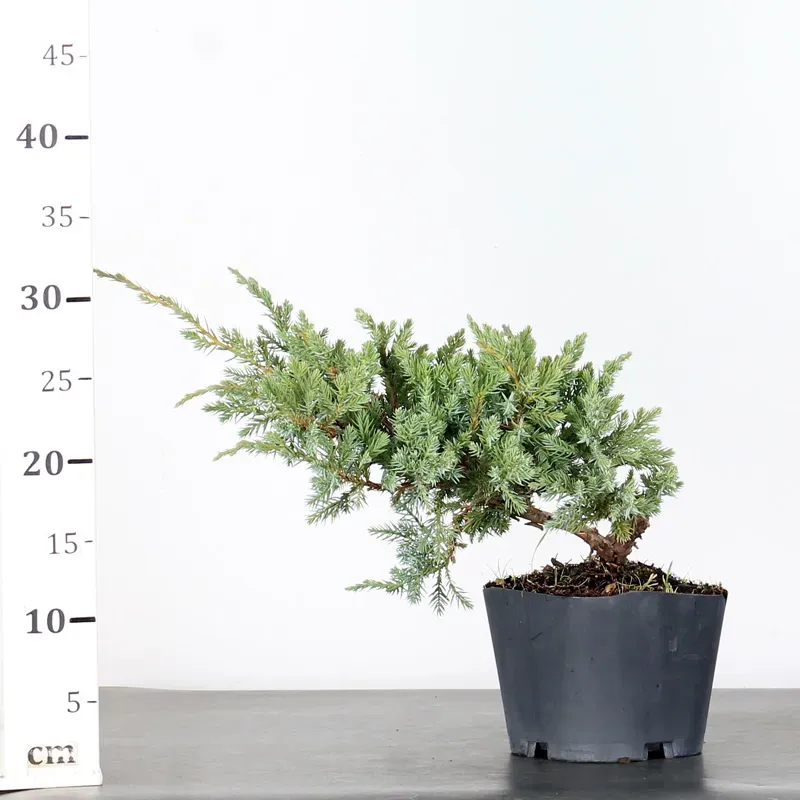 The "Juniperus horizontalis Blue Chip" bonsaï is a dwarf juniper with fine, scaly, silvery foliage, highly prized as a bonsai for its naturally creeping and flowing habit.