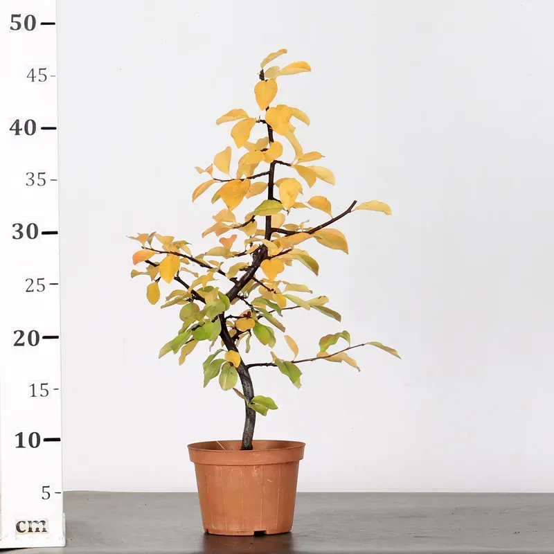 The quince tree "Cydonia oblonga" is a small fruit tree ideal for bonsai. It is easy to train and wire, making it perfect for beginners. Its foliage turns beautiful red and orange hues in the fall, and with good care, it can flower and produce beautiful, fragrant fruit after a few years.