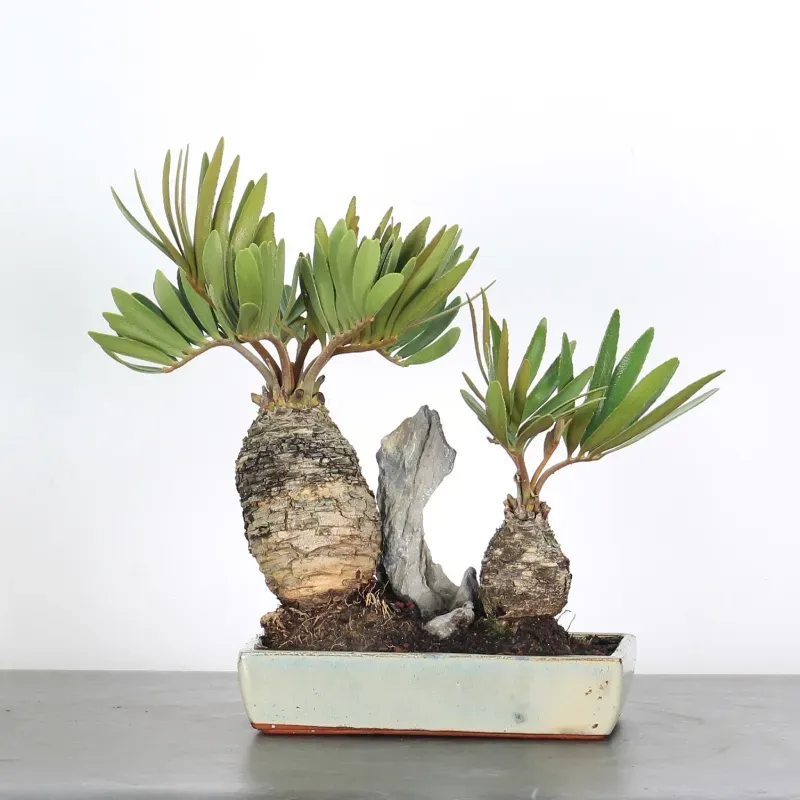 The Zamia, "Zamioculcas zamiifolia", is an evergreen shrub with hairy, hard, green foliage. It is widely used as a houseplant, in greenhouses or conservatories. Zamia is native to Mexico, from the warm, sandy coastal plains. Americans call it "cardboard palm." It does not produce flowers, but cones. It is dioecious, meaning it produces female cones with red seeds and male cones on separate plants.