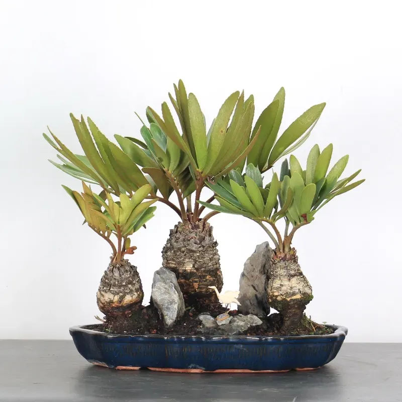 The Zamia, "Zamioculcas zamiifolia", is an evergreen shrub with hairy, hard, green foliage. It is widely used as a houseplant, in greenhouses or conservatories. Zamia is native to Mexico, from the warm, sandy coastal plains. Americans call it "cardboard palm." It does not produce flowers, but cones. It is dioecious, meaning it produces female cones with red seeds and male cones on separate plants.
