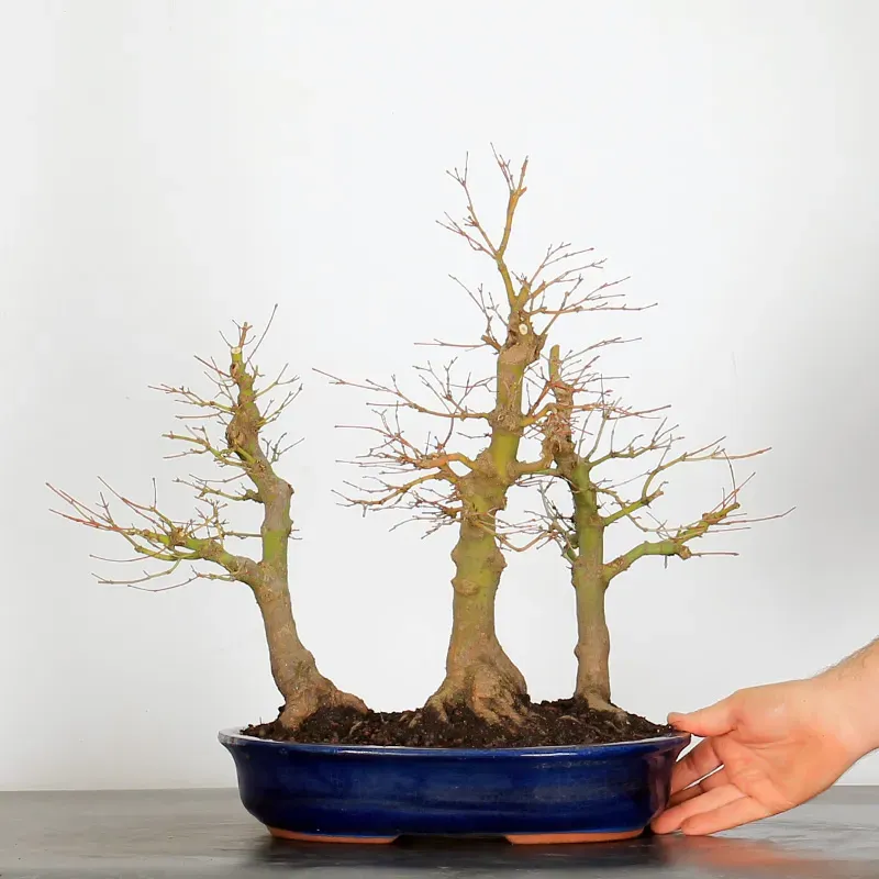 If you like bonsai groups and forests, palmatum maples are among the most suitable. It is the emblematic species for the creation of these compositions. With pinching and pruning, in a few years, you will get a magnificent branching.