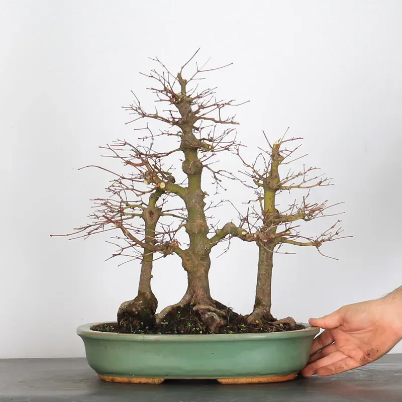If you like bonsai groups and forests, palmatum maples are among the most suitable. It is the emblematic species for the creation of these compositions. With pinching and pruning, in a few years, you will get a magnificent branching.