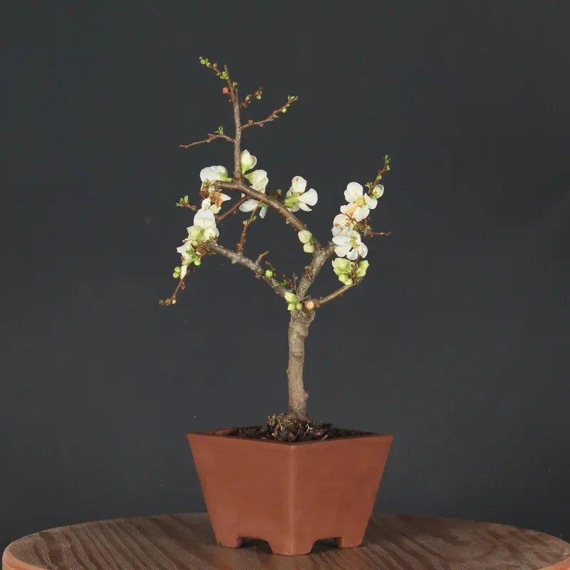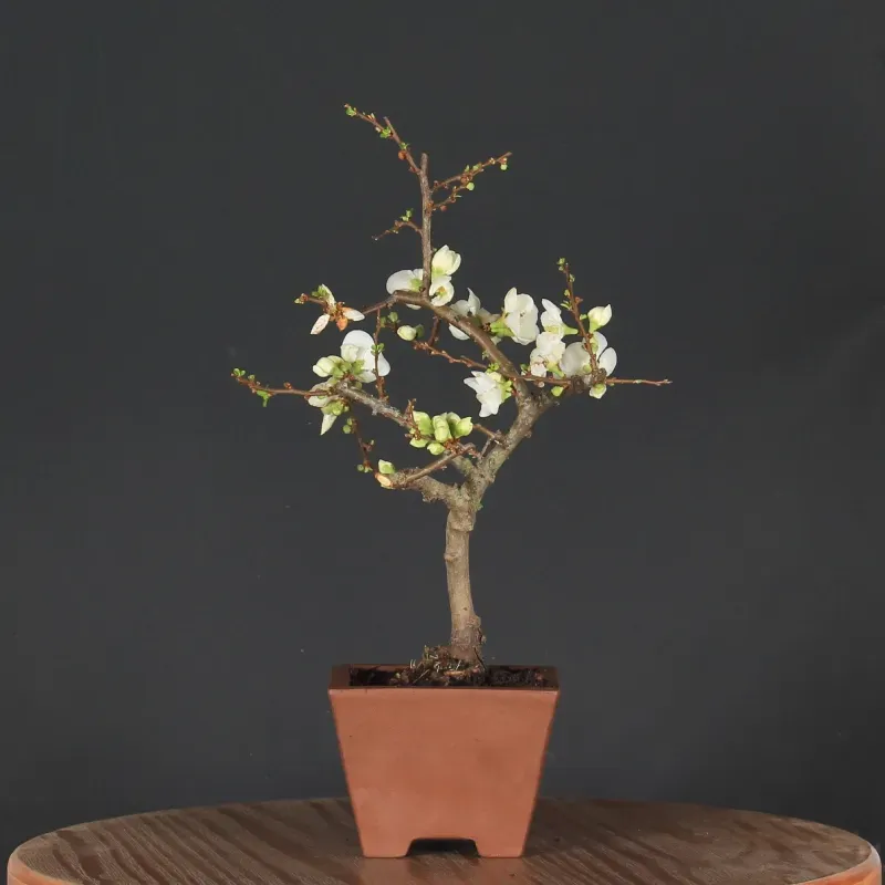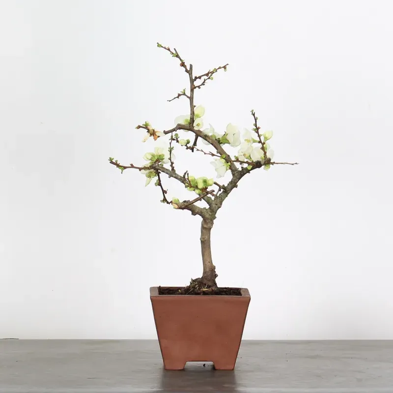 The Japanese quince "Chaenomeles speciosa Nivalis" is a much-loved bonsai for its magnificent little white flowers, which come into bloom early, from February onwards.
