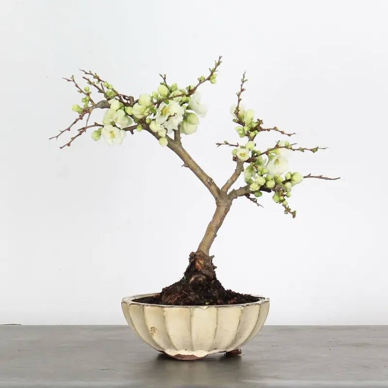 The Japanese quince "Chaenomeles speciosa Nivalis" is a much-loved bonsai for its magnificent little white flowers, which come into bloom early, from February onwards.