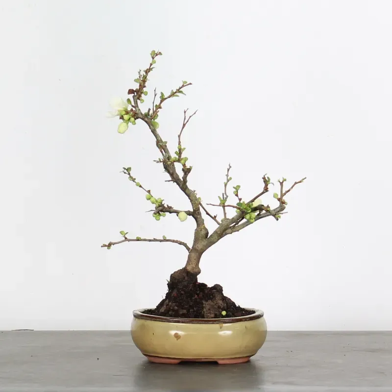 The Japanese quince "Chaenomeles speciosa Nivalis" is a much-loved bonsai for its magnificent little white flowers, which come into bloom early, from February onwards.