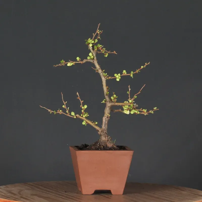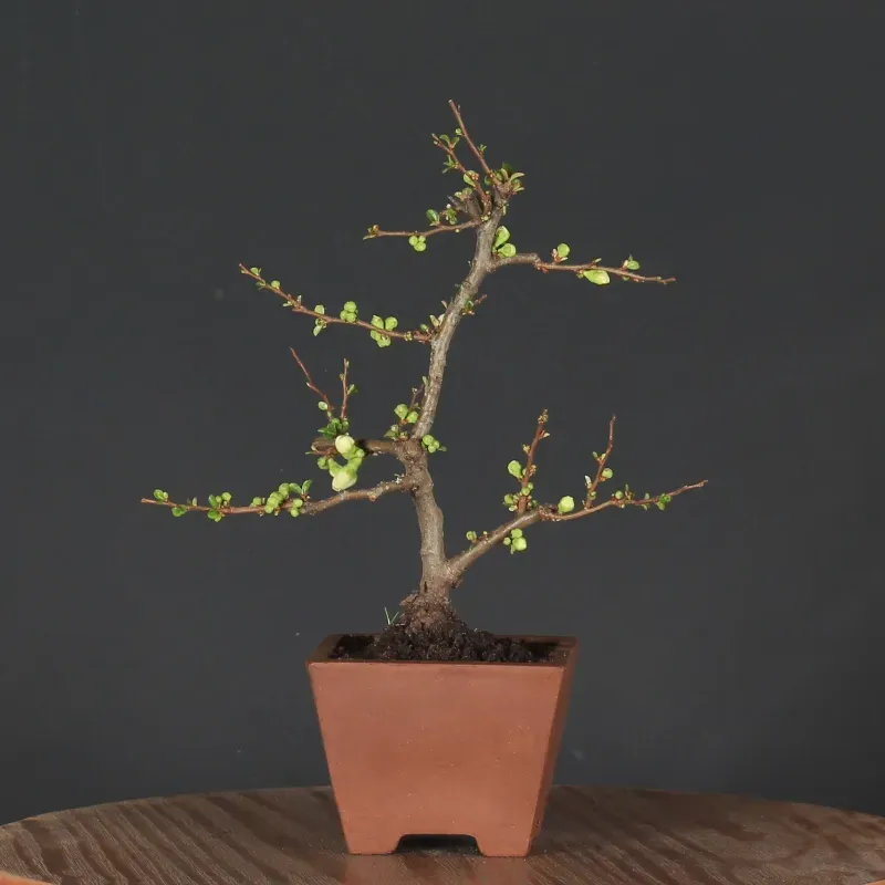 The Japanese quince "Chaenomeles speciosa Nivalis" is a much-loved bonsai for its magnificent little white flowers, which come into bloom early, from February onwards.