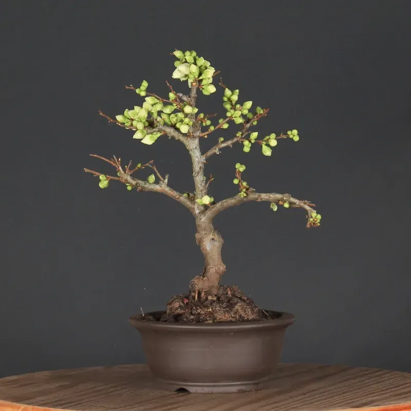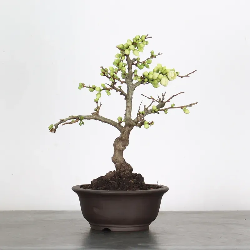 The Japanese quince "Chaenomeles speciosa Nivalis" is a much-loved bonsai for its magnificent little white flowers, which come into bloom early, from February onwards.