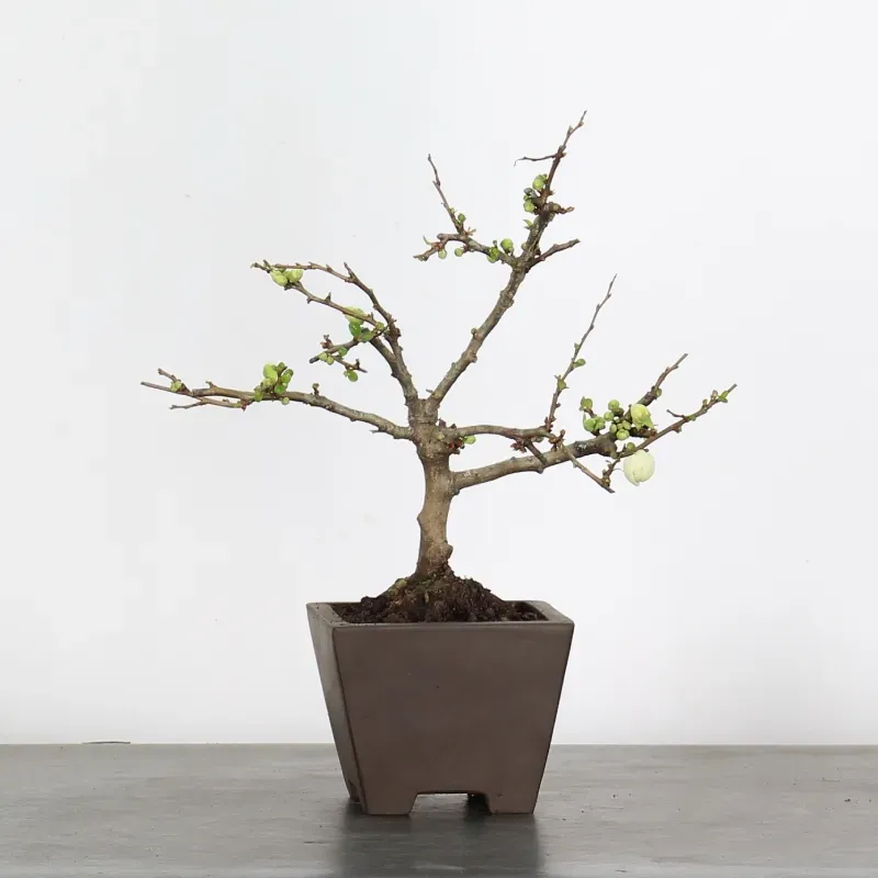 The Japanese quince "Chaenomeles speciosa Nivalis" is a much-loved bonsai for its magnificent little white flowers, which come into bloom early, from February onwards.