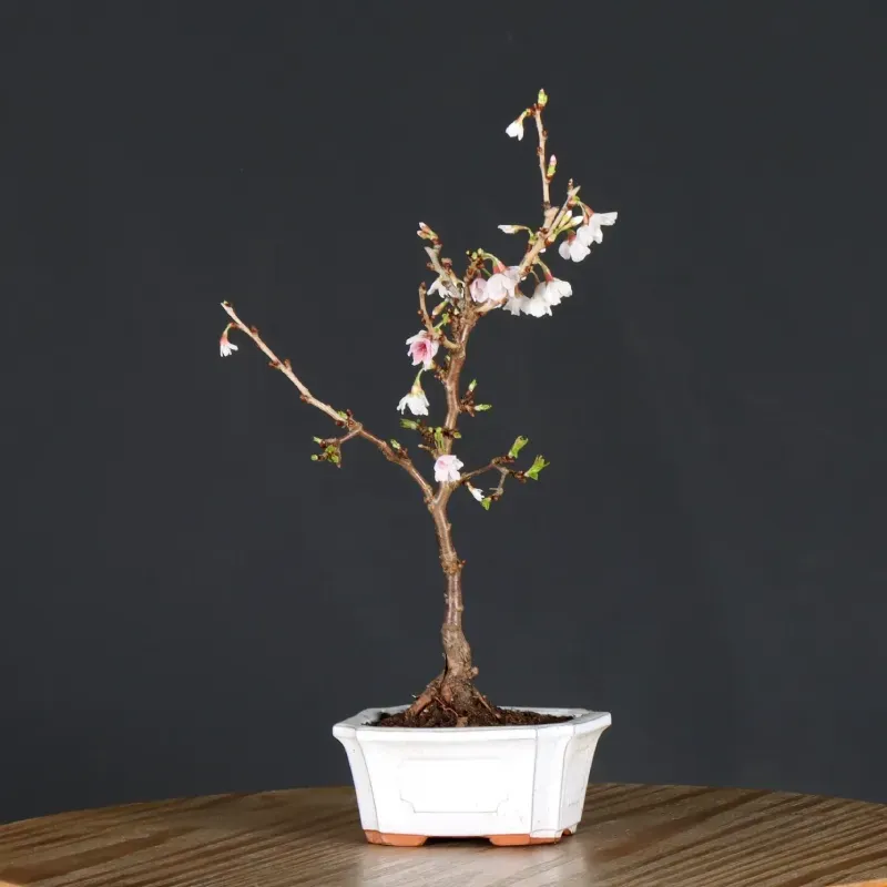 The Japanese cherry tree "PRUNUS KOJO NO MAI" is a symbol of Japan's ephemeral beauty and is an interesting bonsai tree to grow. The splendour of its flowers in February/March and its naturally twisted habit make it very popular.