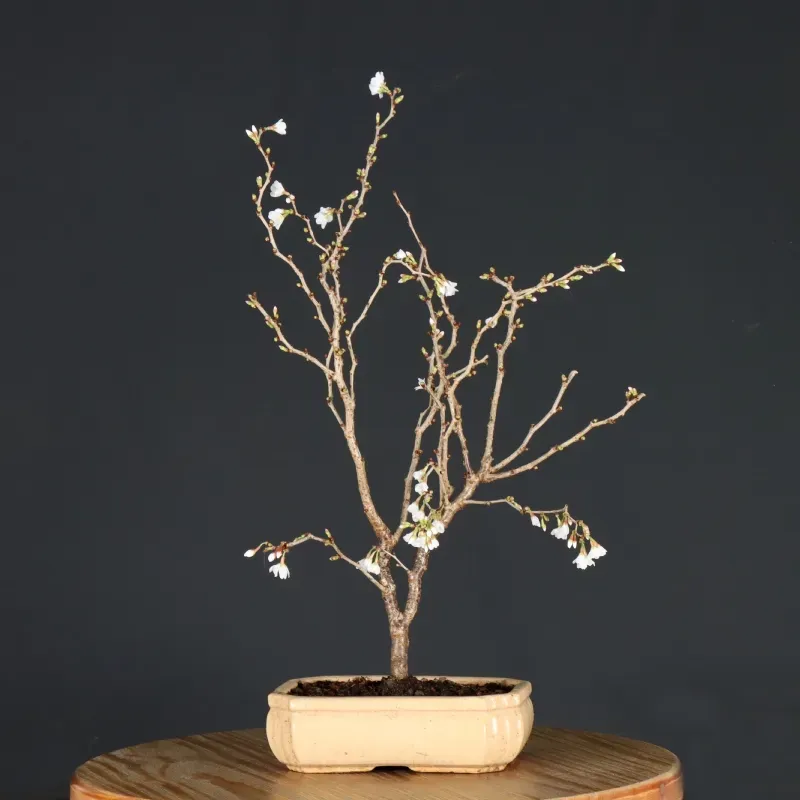 The Japanese cherry tree "PRUNUS KOJO NO MAI" is a symbol of Japan's ephemeral beauty and is an interesting bonsai tree to grow. The splendour of its flowers in February/March and its naturally twisted habit make it very popular.