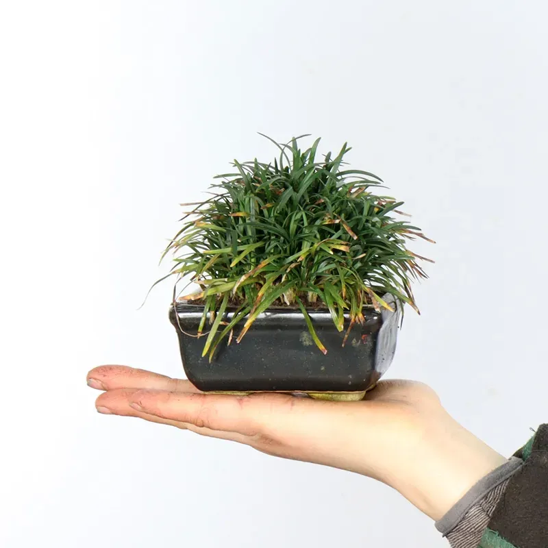 Ophiopogon is an elegant perennial, ideal for accompanying a bonsai and enriching its display. With its fine, dense, deep green foliage, it brings a natural and balanced touch to the setting while creating a miniature woodland effect. Easy to care for, it thrives in partial shade and a cool, well-drained substrate. Perfect for complementing a harmonious composition, it enhances the bonsai without stealing the show.