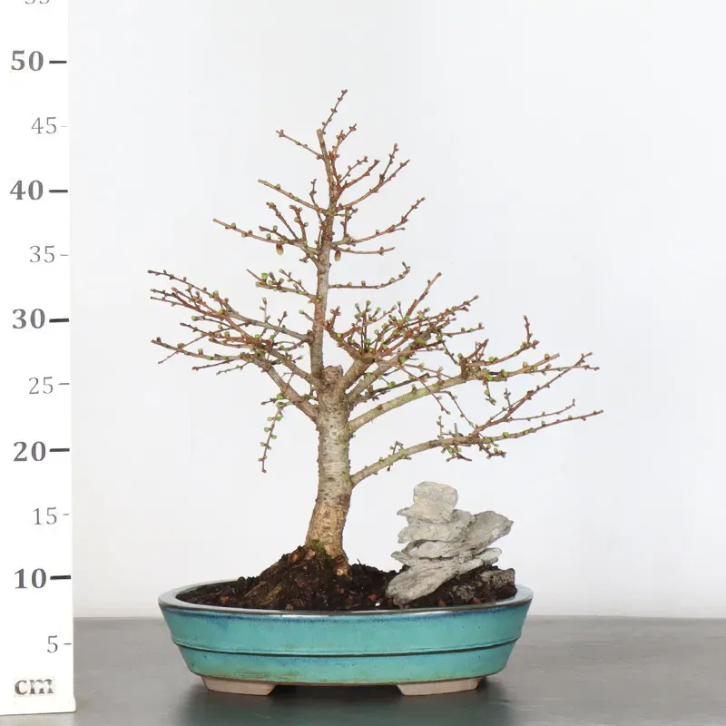 The Larch bonsai "Larix decidua" is a deciduous conifer appreciated for its textured trunk and soft needles that turn golden in autumn before falling. It tolerates pruning well and adapts well to upright and informal styles. Prefers full sun exposure and requires wintering outdoors, away from severe frost.