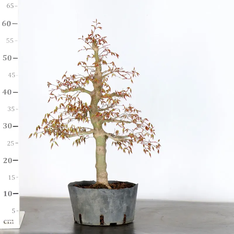 The Japanese maple "palmatum" is what is known as a stock variety, and is often used as rootstock for other varieties. It is the hardiest and most vigorous. Its foliage is pink-green in spring, turning red in autumn.
