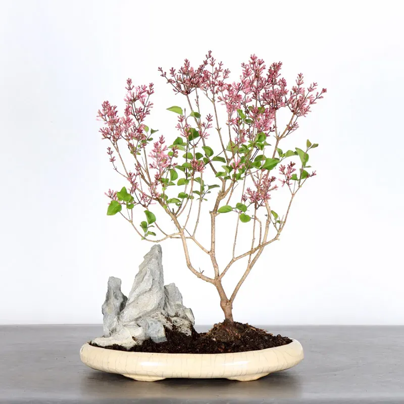 The Chinese Lilac "Syringa Red Pixie" is a shrub with a very compact, bushy habit that is appreciated for its abundant, fragrant flowering. It is a highly decorative bonsai plant, flowering from April to May. Easy to care for, it needs a sunny position and regular, but not excessive, watering. Its naturally elegant habit and flowering habit make it an ideal choice for lovers of flowering bonsai.