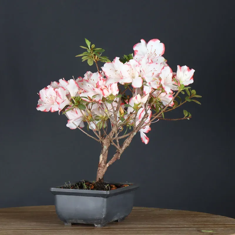 The Japanese azalea blooms beautifully in April/May. Very interesting to train and to grow as a bonsai for its ease of cultivation: very hardy.