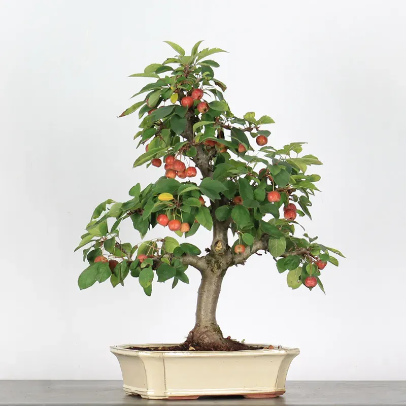 The apple bonsai, "Malus Evereste" is very popular thanks to its small decorative fruits, simple to grow, it grows quickly, its flowering and its small fruits are a real delight from spring to winter.