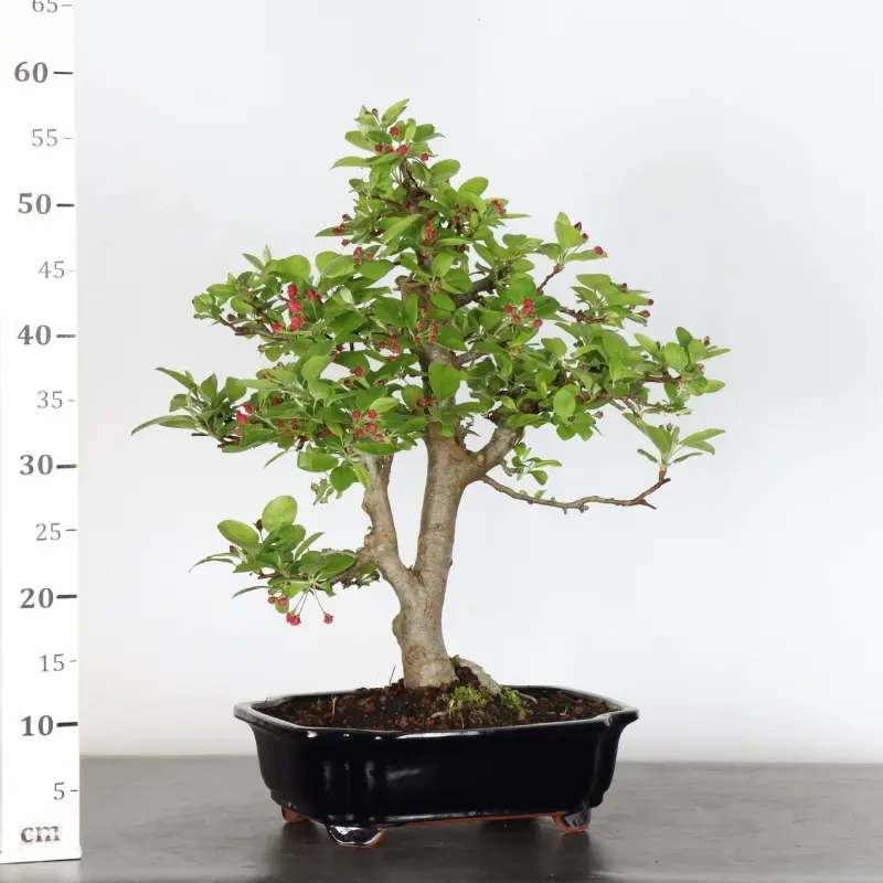 The apple bonsai, "Malus Evereste" is very popular thanks to its small decorative fruits, simple to grow, it grows quickly, its flowering and its small fruits are a real delight from spring to winter.