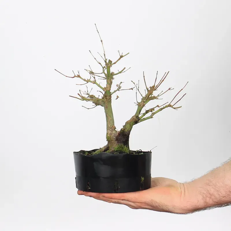 Maple likes cool soils with a good amount of organic matter. In the nursery, we use agricultural soil composed of black peat, blond peat, eco-aged, topsoil, horse manure, pozzolana. During the next repotting, which is done about every 2/3 years at the beginning of March, you can mix more draining substrate such as: akadama, pumice, kiryu... Just be careful not to disturb the root bread, don't destroy the whole root ball