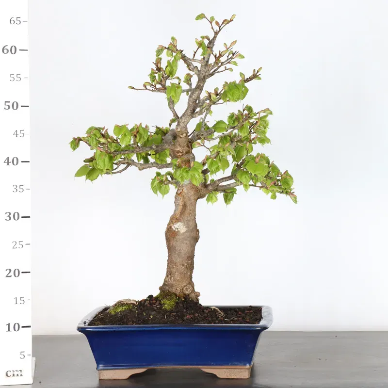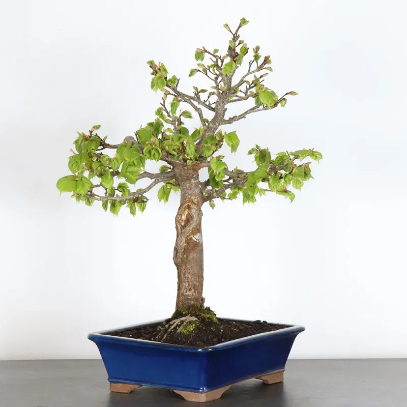 The linden bonsai (Tilia), also known as the herbal tea tree, is appreciated for its harmonious shape and dense green foliage. Renowned for its longevity, the linden tree is deeply rooted in European culture.