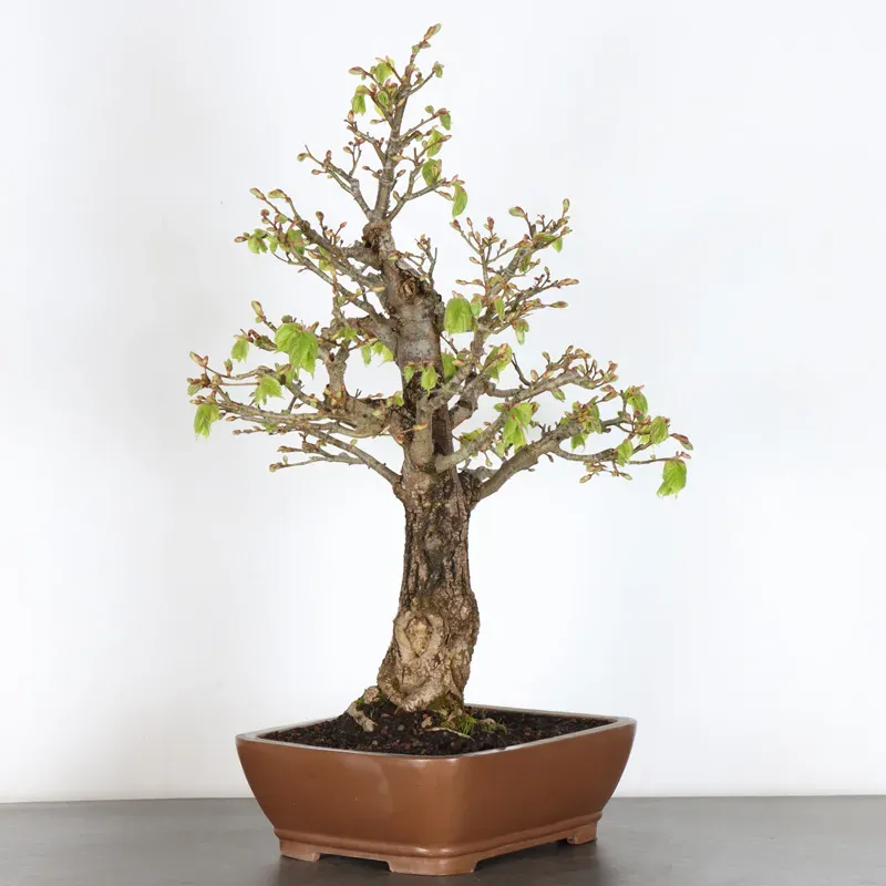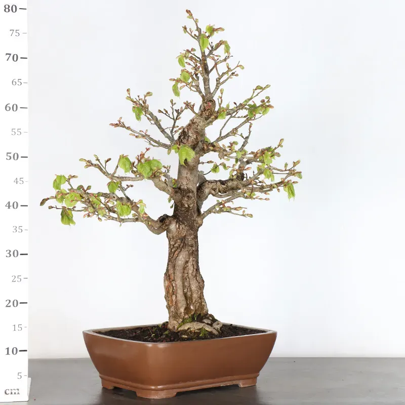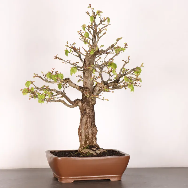 The linden bonsai (Tilia), also known as the herbal tea tree, is appreciated for its harmonious shape and dense green foliage. Renowned for its longevity, the linden tree is deeply rooted in European culture.