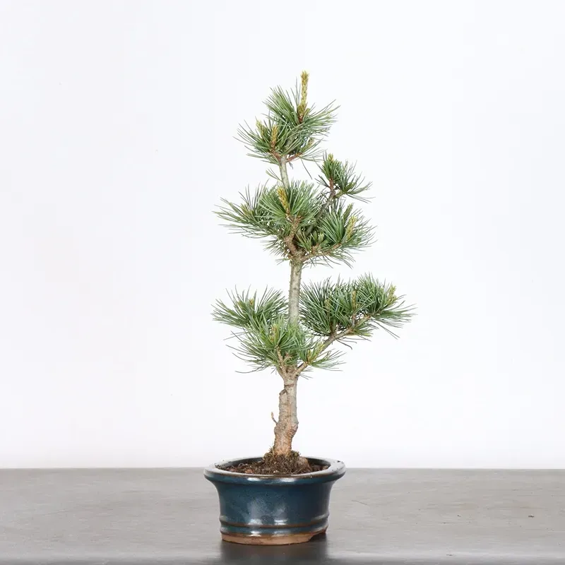The Japanese white pine bonsai is a popular tree because of its fine needles sheathed by five, green/blue colours, it can be shaped to present graceful movements of branches and an elegant trunk, it has rather a slow growth.