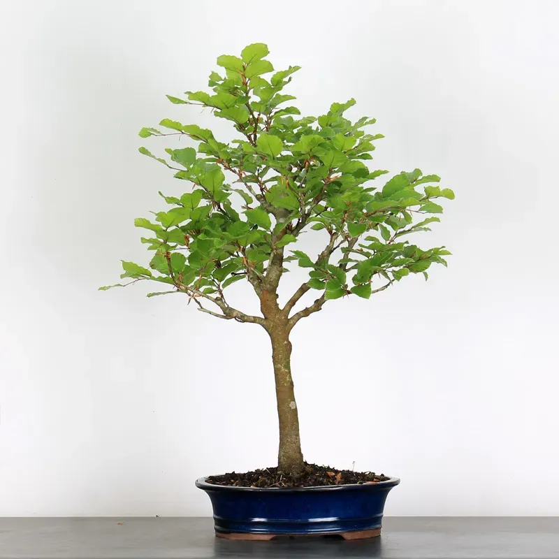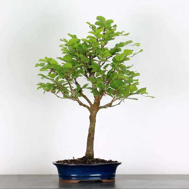 The Beech is a deciduous bonsai tree that thrives in the lower mountains and in the countryside. Its greyish bark becomes rougher as it ages. Its foliage is marcescent, meaning that it remains attached to the tree even after the leaves have died in autumn and often until the spring swell of buds causes it to fall.