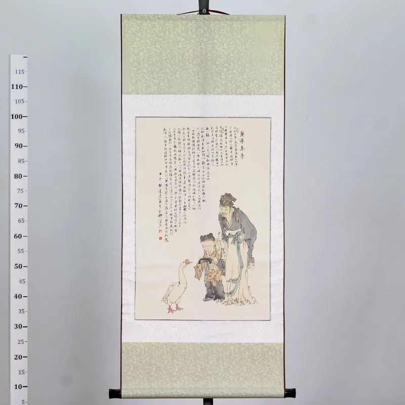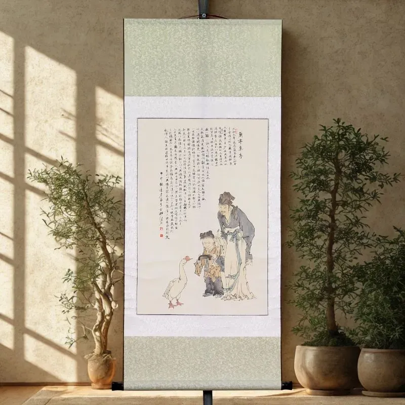 Enhance your interior with this kakejiku calligraphy piece, an authentic wall decoration that has lived before and has been carefully preserved, mounted on a wooden scroll. This artwork harmoniously combines refined calligraphy and classic painting, offering an authentic and soothing artistic expression.