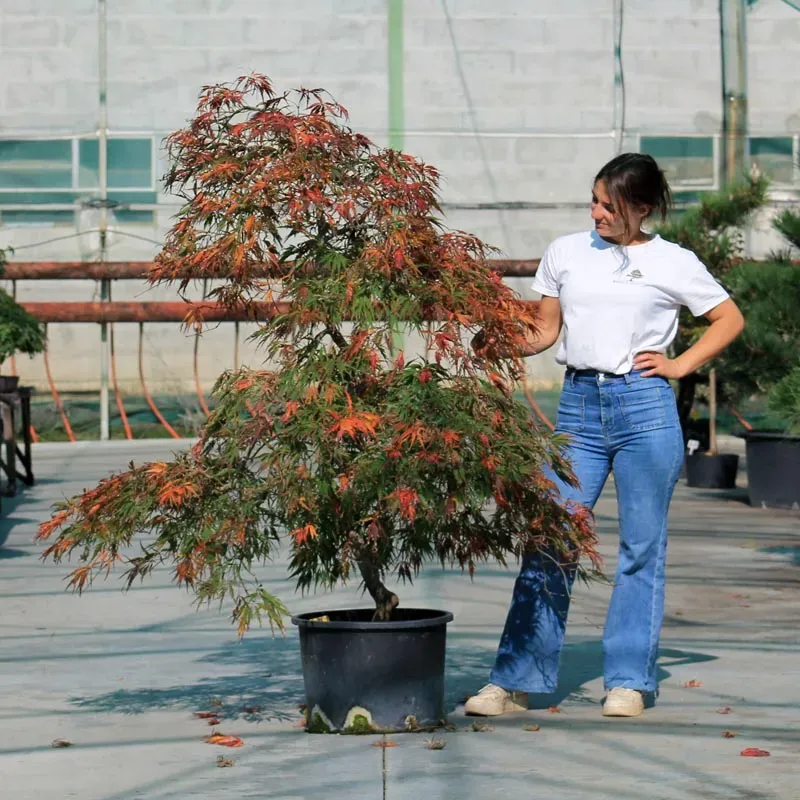 The Japanese maple and its beautiful foliage changes color with the seasons, ranging from reddish-purple in spring, slightly green in summer, and in autumn becomes fiery red! They have been cultivated for more than 30 years, first growing them in the open field and then training them to become Niwakis.