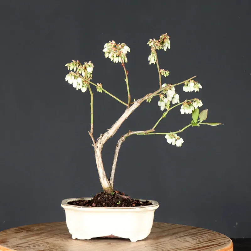 The blueberry bonsai "Vaccinium Corymbosum Hardy Blue" is a variety that is both decorative and productive, ideal for lovers of unusual plants. This small fruit-bearing shrub is prized for its delicate foliage, glossy green in spring and summer, which turns stunning shades of red in autumn. Easy to grow in a pot, it is perfectly suited to bonsai cultivation.