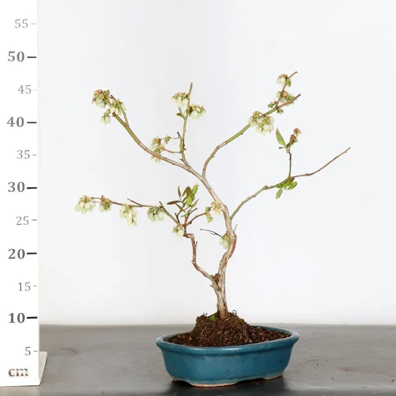 The blueberry bonsai "Vaccinium Corymbosum Hardy Blue" is a variety that is both decorative and productive, ideal for lovers of unusual plants. This small fruit-bearing shrub is prized for its delicate foliage, glossy green in spring and summer, which turns stunning shades of red in autumn. Easy to grow in a pot, it is perfectly suited to bonsai cultivation.