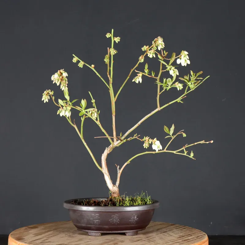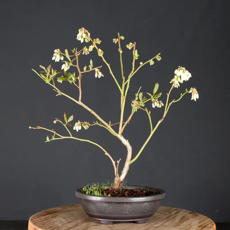 Le bonsaï myrtillier "Vaccinium Corymbosum Hardy Blue" est une variété à la fois décoratif et productif, idéale pour les amateurs de plantes originales. Ce petit arbuste fruitier séduit par son feuillage délicat, vert brillant au printemps et en été, qui se pare de superbes teintes rouges à l’automne. Facile à cultiver en pot, il s’adapte parfaitement à la culture en bonsaï.