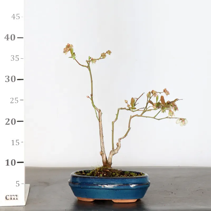Le bonsaï myrtillier "Vaccinium Corymbosum Hardy Blue" est une variété à la fois décoratif et productif, idéale pour les amateurs de plantes originales. Ce petit arbuste fruitier séduit par son feuillage délicat, vert brillant au printemps et en été, qui se pare de superbes teintes rouges à l’automne. Facile à cultiver en pot, il s’adapte parfaitement à la culture en bonsaï.