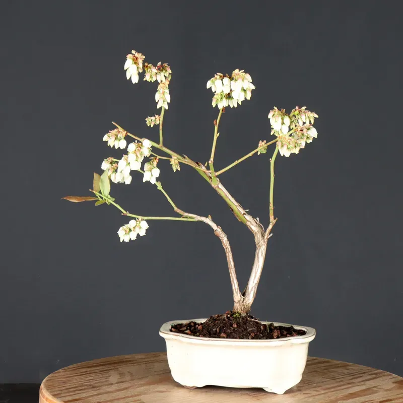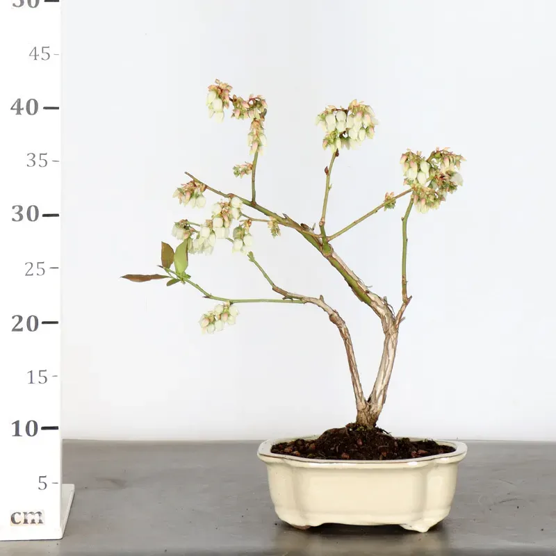 Le bonsaï myrtillier "Vaccinium Corymbosum Hardy Blue" est une variété à la fois décoratif et productif, idéale pour les amateurs de plantes originales. Ce petit arbuste fruitier séduit par son feuillage délicat, vert brillant au printemps et en été, qui se pare de superbes teintes rouges à l’automne. Facile à cultiver en pot, il s’adapte parfaitement à la culture en bonsaï.
