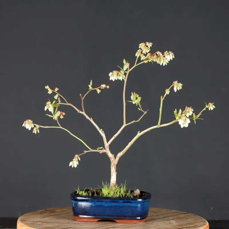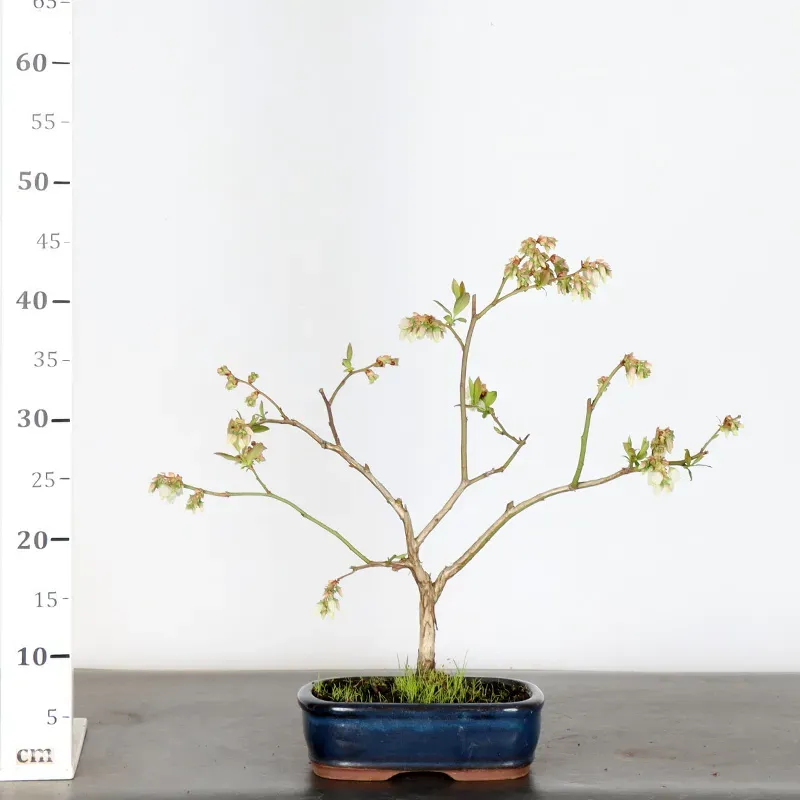 Le bonsaï myrtillier "Vaccinium Corymbosum Hardy Blue" est une variété à la fois décoratif et productif, idéale pour les amateurs de plantes originales. Ce petit arbuste fruitier séduit par son feuillage délicat, vert brillant au printemps et en été, qui se pare de superbes teintes rouges à l’automne. Facile à cultiver en pot, il s’adapte parfaitement à la culture en bonsaï.