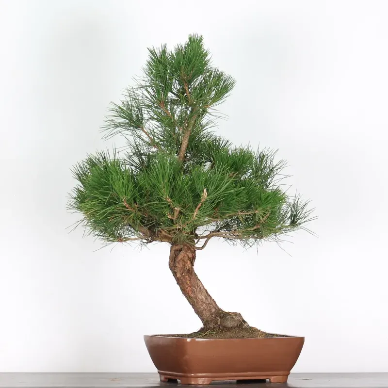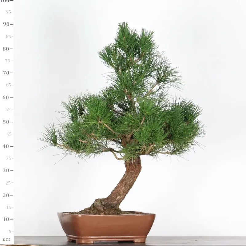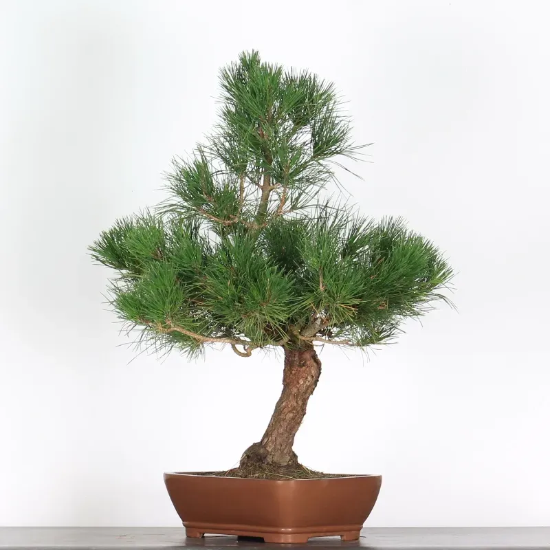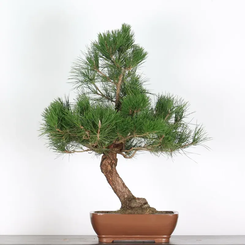Le Pin Thunbergii est une essence de virilité par excellence: arbre droit, magnifique, puissant, bien "assis" dans son pot, se dresse vers le ciel. Le tronc sombre, avec une écorce crevassée, offre un saisissant contraste avec les aiguilles vert assez clair, pleines de fraîcheur et de santé.