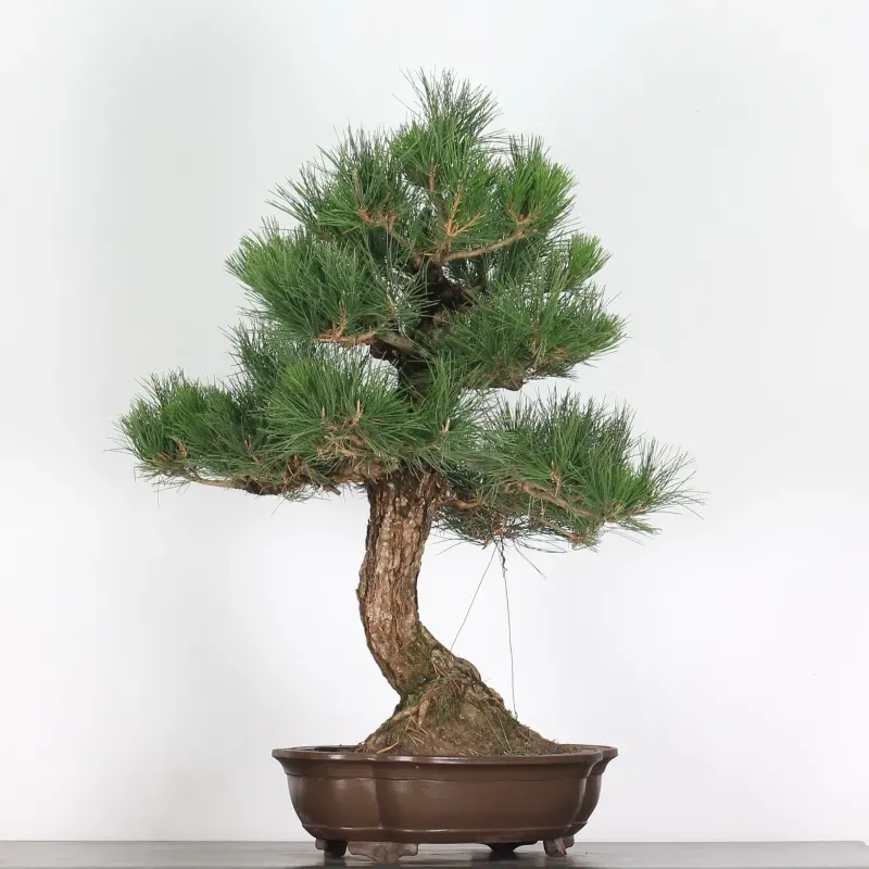 Le Pin Thunbergii est une essence de virilité par excellence: arbre droit, magnifique, puissant, bien "assis" dans son pot, se dresse vers le ciel. Le tronc sombre, avec une écorce crevassée, offre un saisissant contraste avec les aiguilles vert assez clair, pleines de fraîcheur et de santé.