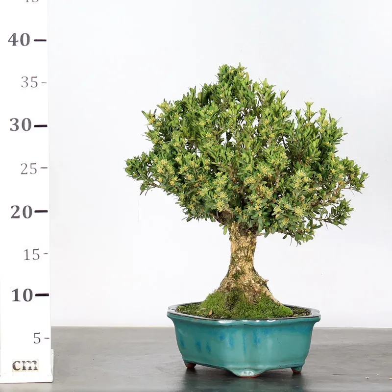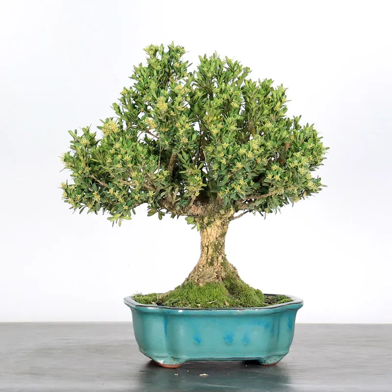 Le buis en bonsaï "Buxus" est apprécié pour son feuillage dense et persistant, composé de petites feuilles vert foncé, idéales pour la miniaturisation. C’est une espèce robuste et longévive, qui supporte bien la taille répétée et permet des formes classiques très structurées. Son tronc peut devenir noueux et expressif avec le temps, donnant un caractère ancien et élégant au bonsaï.