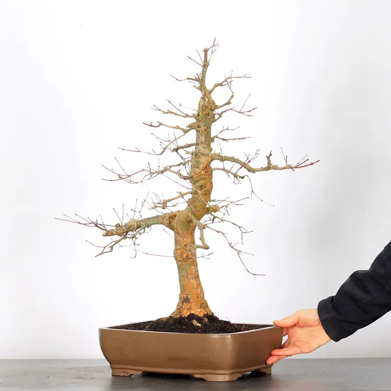 L’Erable rouge du Japon "Deshojo" en bonsaï séduit par son évolution spectaculaire au fil des saisons. Son feuillage démarre rouge profond au printemps, devient progressivement vert en été, puis se pare de superbes teintes rouge orangé à l’automne, offrant un magnifique spectacle à contempler tout au long de l’année.