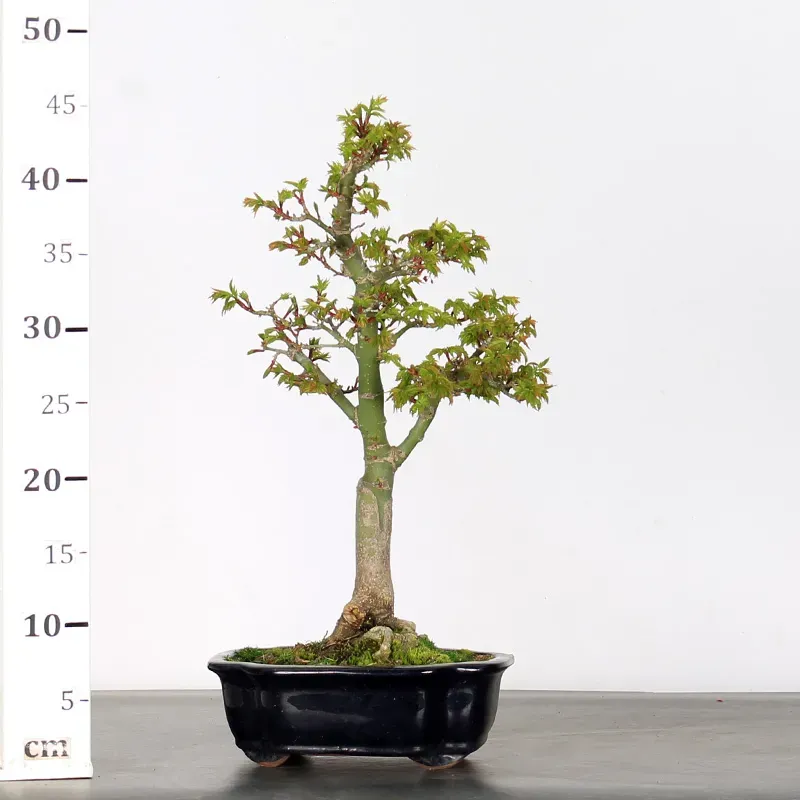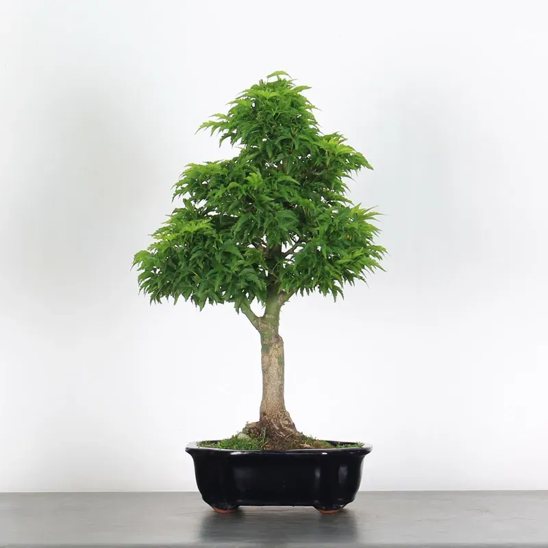 L’Erable Shishigashira, Acer Shishigashira développe de petites feuilles aux pétioles courts qui poussent de manière très serrée le long des branches. Son port très compact est idéal pour une culture en bonsaï. Au printemps, le feuillage et d'un vert tendre avant de prendre une teinte plus profonde durant l'été. A l'automne, vous pourrez profiter de couleurs plus chatoyantes allant du jaune au rouge en passant par diverses teintes d'orange. Le 'Shishigashira' est une variété naine avec une pousse lente. Comme elle fait naturellement de petits entre-noeuds et de petites feuilles, elle est très adaptée aux petits bonsaïs mais pas seulement.