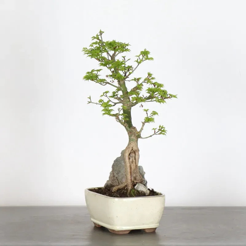 L’Erable Shishigashira, Acer Shishigashira développe de petites feuilles aux pétioles courts qui poussent de manière très serrée le long des branches. Son port très compact est idéal pour une culture en bonsaï. Au printemps, le feuillage et d'un vert tendre avant de prendre une teinte plus profonde durant l'été. A l'automne, vous pourrez profiter de couleurs plus chatoyantes allant du jaune au rouge en passant par diverses teintes d'orange. Le 'Shishigashira' est une variété naine avec une pousse lente. Comme elle fait naturellement de petits entre-noeuds et de petites feuilles, elle est très adaptée aux petits bonsaïs mais pas seulement.