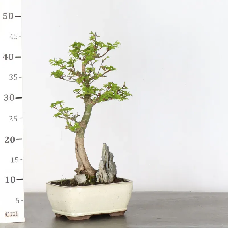L’Erable du japon "Shishigashira" vous offre son feuillage crispé et ondulé au coloris évolutif. Son nom ‘Shishigashira’ signifie ‘Crinière de Lion’ en allusion à ce feuillage très original. Au printemps, le feuillage et d'un vert tendre avant de prendre une teinte plus profonde durant l'été. A l'automne, vous pourrez profiter de couleurs plus chatoyantes allant du jaune au rouge en passant par diverses teintes d'orange. Le 'Shishigashira' est une variété naine avec une pousse lente. Comme elle fait naturellement de petits entre-nœuds et de petites feuilles, elle est très adaptée aux petits bonsaïs mais pas seulement.