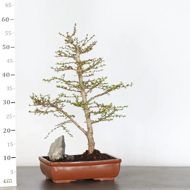 Le bonsaï Mélèze "Larix décidua" est un conifère caduc apprécié en bonsaï pour son tronc texturé et ses aiguilles souples qui deviennent dorées en automne avant de tomber. Il offre une bonne tolérance à la taille et s’adapte bien aux styles droits et informels. Préfère une exposition en plein soleil et nécessite un hivernage en extérieur, hors gel intense.